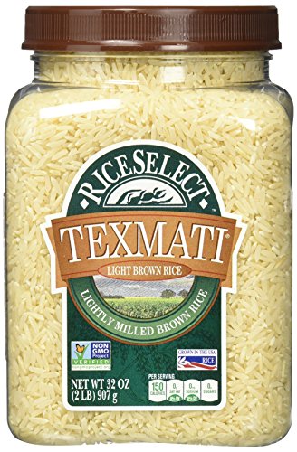 Long Grain American Basmati. No additives. Texmati Light Brown, the natural alternative to brown rice. Most of the nutrition, cooks in 20 minutes. Quick cooking. Great tasting. Nutritious. All natural. Case of four 32-ounce jars (128 total...