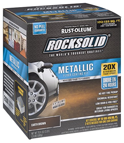 Rust-Oleum Rock-solid Metallic Garage Floor Coating Kit is made from a unique polycuramine formula that provides a tough, ultra hard coating on properly prepared interior concrete floors including garages, basements, workshops and any other...