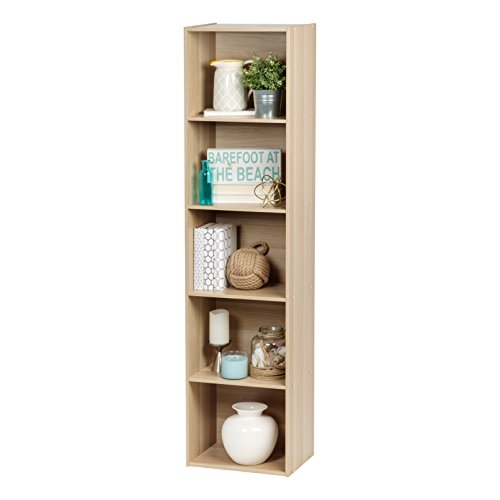 The sky's the limit with the Iris 5-tier shelf! over 5 feet high, this shelf is versatile to be used vertically or horizontally. Natural light brown color blends with any decor. Store heavier objects in lower cubes and protect precious items...