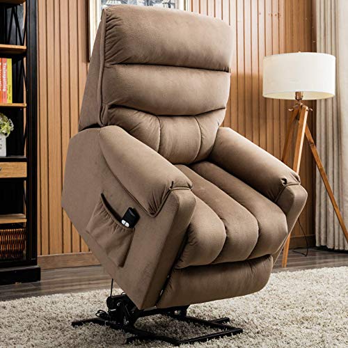 CANMOV overstuffed foam motion reclining mechanism lift chair is functional for elderly and people with limited mobility, electric powered lift mechanism could lift you up smoothly and safely. Remote control activates transitions between...