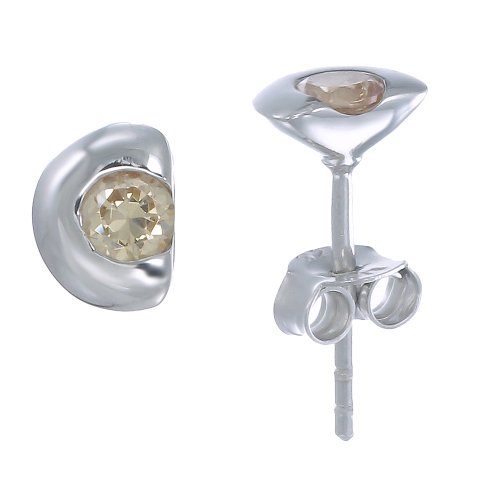 Sterling Silver Brown CZ Stud Earrings. 30 Day Easy Returns. Jewelry Gift Box Included.925 Sterling...