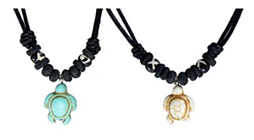 The Sea Turtle material is likely resin, but is not real turquoise. It measures approximately 3/4" long and is fastened by stainless steel wire and decor with wood beads. Sea turtle Bead Necklace look pretty and stylish, light and comfortableThe...