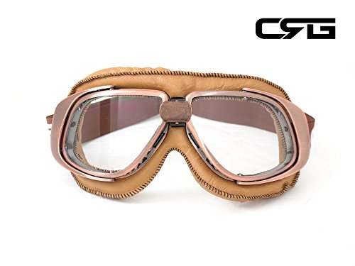 Transparent color lens, copper color import ABS raw frame, brown color sponge padding frame, brown color strap. All goggles are brand new with original CRG packaging box. PC transparent lens, scratch resistant, 100% UV protectionImport ABS raw...