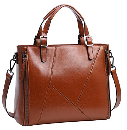 Info: Material: First layer top grain cowhide leather (exterior) + Polyester cotton (interior)Size: (L) 13.19 x (H) 9.05 x (W) 4.72 inchesNet Weight: 2.26 poundsHardware: Silver colored stainless steal Strap: Leather double top handle strap + Long...