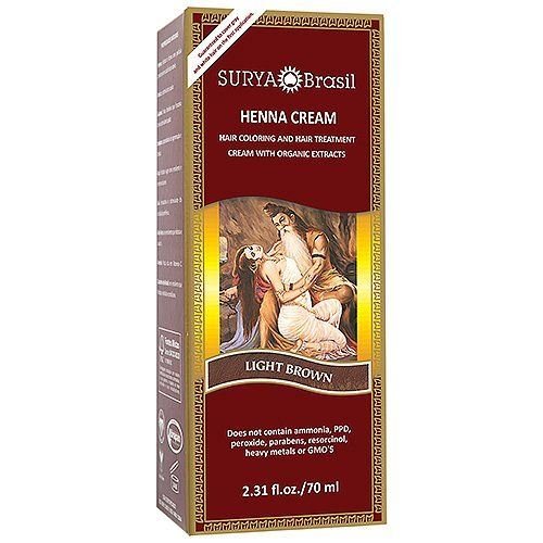 Surya Henna Cream in Light Brown is semi-permanent hair colour containing hair dyes plus herbs and fruits from Brazil and India, which offer simultaneous colouration and deep conditioning treatment for the hair. Colours grey on first...