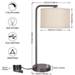 Side Table Lamp with Dual USB Ports, Dimmable Bedside Lamp Modern Nightstan…