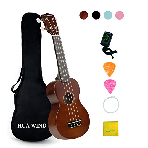 Hua Wind rainbow series 21 inch ukulele, with brown, matt brown, pink, light blue, blue, dark 5 colors to choose. Each ukulele is made out of years' natural air-dried wood and set with nylon strings at high quality. With the small and light...
