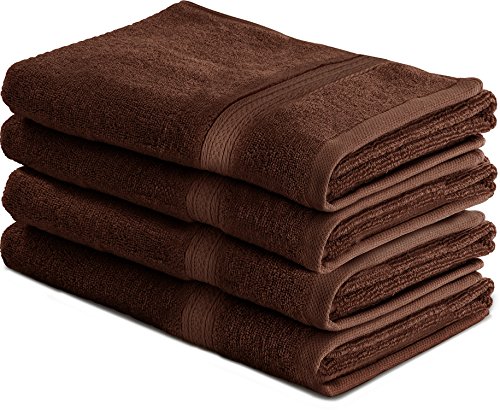 . Do not use bleach, fabric softeners, and iron as it may damage its quality; always wash the towels separately to minimize lintSet includes four 700 GSM premium bath towels in Brown measuring 27 by 54 inches eachWoven with 100% ring spun...