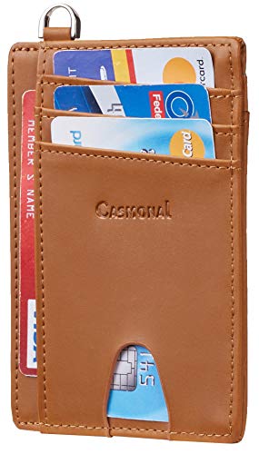 MINIMALIST WALLET: Sizing 3.15" x 4.6" x 0.25", you can hardly feel it in your pocket; LARGE CAPACITY: 1 ID/Driver license slot, 7 card slots and 1 cash slot, for a slim wallet, the capacity is really amazing; RFID BLOCKING: military grade RFID...