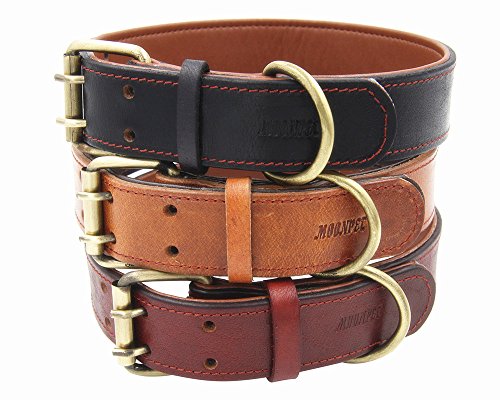 Moonpet Soft Padded Real Leather Dog Collar - Best Full Grain Heavy Duty Genuine Leather Collar - Durable Adjustable for Small Medium Large Male Female Dogs - Light Brown,12.4-16.4'' ? METERIAL: Made out of stylish 100% genuine leather, it is...