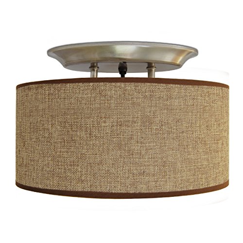 Dream Lighting 12Volt DC Fabric Light Fixture with Brown Burlap Elliptical Oval Ceiling Light Shade – LED Decor Lamp with Switch- 0.49A, 6W,