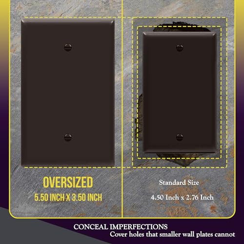 ENERLITES Blank Device Wall Plate, Gloss Finish, Over-Size 1-Gang 5.5″ x 3.5″, Unbreakable Polycarbonate Thermoplastic, UL Listed, 8801O-BR, Brown