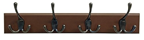 Headbourne 8044E 18″ Dark Brown Hook Rail / Coat Rack with 4 Black Nickel Triple Hooks