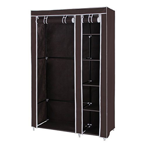 SONGMICS Clothes Closet Portable Wardrobe Storage Organizer with Shelves Dark Brown 43″ ULSF007K