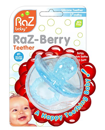 The RaZ-Berry Teether is a Soft Silicone, Stimulating, Multi-Textured Teether/Pacifier Used to Soothe Baby’s Sore Gums. This Hands Free Teether is 100% Medical Grade Silicone. Can Be Frozen for Extra Comfort.