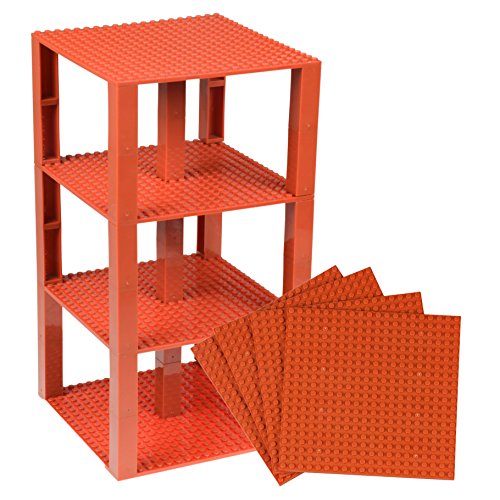 Home » Toys » Strictly Briks Classic Baseplates 10″ x 10″ Brik Tower 100% Compatible with All Major Brands | Building Bricks for Towers and More | 4 Light Brown Stackable Base Plates & 30 Stackers