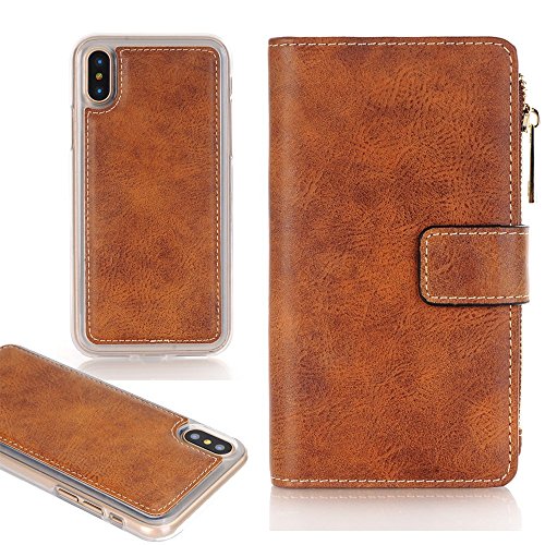 iPhone 6 4.7 Inch Case, TechCode Premium PU Leather Zipper Phone Pouch [Card Slots] Removable Cover Protective Case for Apple iPhone 6 4.7 ” 2017 (iPhone 6, Light Brown)