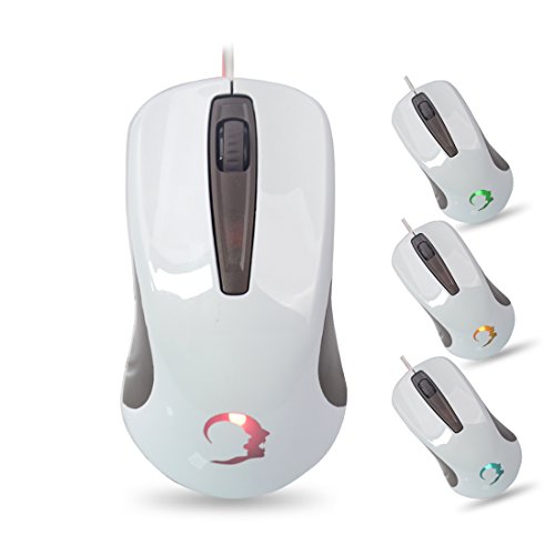 Optical Gaming Mouse SAREPO GK Wire Desktop Mouse Mice 3-Button Wired USB Mice Up to 1600 DPI Optical Mice Compatible with PCs, Macs, Desktops and Laptops (White+Brown)