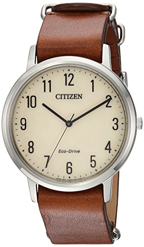 CITIZEN takes casual modern to a new level with the distinctly constructed Chandler Collection. Effortless, modern design with a touch of color are key to these timepieces. Show off your light powered watch, featured with a mocha brown leather nato strap, stainless steel case and parchment white dial.