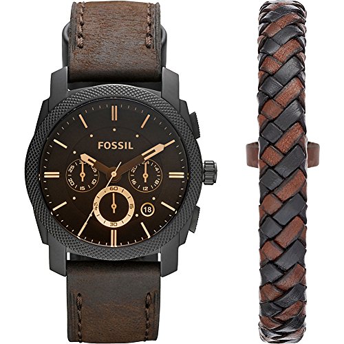 Fossil Machine Chronograph Leather Watch and Bracelet Box Set