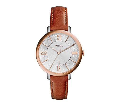 Fossil Women’s Jacqueline Watch in Rose Goldtone with Light Brown Leather Strap