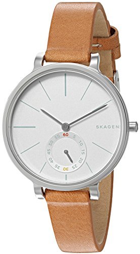 The Hagen has a soft leather watch strap and stainless steel finish. Linear indexes indicate the hours, while a subdial tracks seconds.