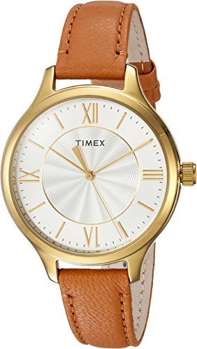 Dial features gold-tone hands and hour markers, minute track, and Timex detailing.