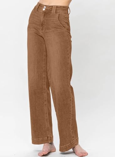 Astylish Womens Jeans Trendy Fall 2025 Wide Leg Jeans Woman Tummy High Waist Double Button Bootcut Trousers Stretchy Vintage Denim Jean Pants Brown Size 10